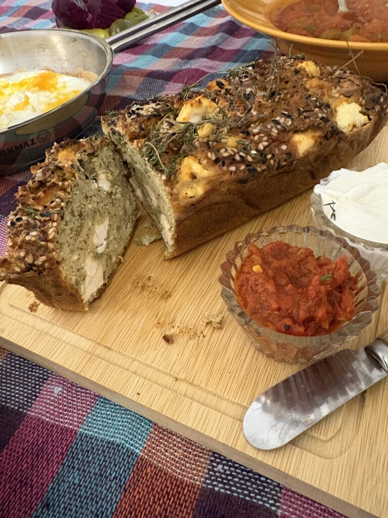 زينتها ببذور كتان وقزحة وسمسم وعرقين ثايم (زعتر).